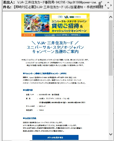 三井住友カードの偽メール:キャンペーン当選のご案内