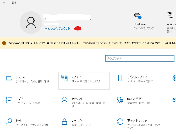 「設定」を開いてみてください。以下のように「Microsoftアカウント」となっていれば大丈夫です。