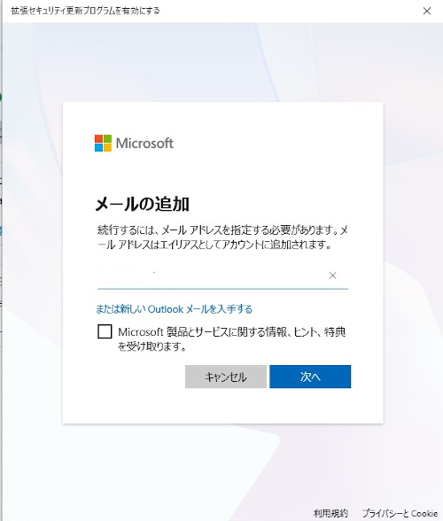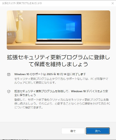 「拡張セキュリティ更新プログラム」登録の指示に従って進めて行きます。